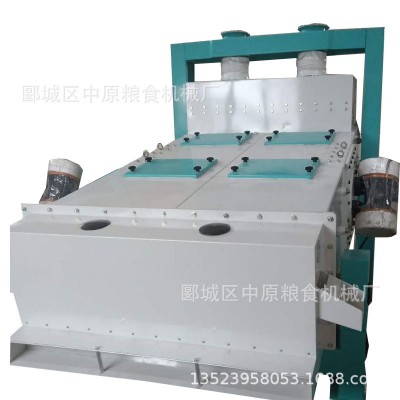 其原理是用篩選法按物料的粒度進行分離。物料由進料管進入進料斗,通過調節板調節物料的料流使物料均勻的落在淌料板上,隨篩體振動,并沿淌料板流到上篩片上面。大型雜質沿上層篩面流入大雜出口排出機外,通過上層篩孔的篩下物落到下篩片上,其中小型雜質通過下篩片的孔眼落到機身底板上,通過細雜出口排出機外,純凈物料沿下層篩面直接流入凈料出口。
