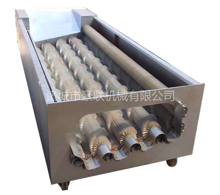 供應蓮藕清洗機廠家價格圖片/根莖類果蔬清洗去泥毛輥清洗機毛輥清洗機采用毛輥式連續自動清洗機,投入物料,新款設備新加一項功能,洗槽上方有噴淋清洗裝置,尼龍毛輥直接接觸物料,毛輥轉動對物料進一步清洗,清洗完畢,打開閥門,即可自動出料,被清洗物潔凈高出人工常規洗法5倍以上。
