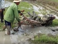 越南超牛的機械,兩個輪子像是水車,能在泥濘中任意行走